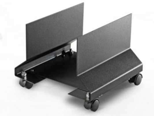 Soporte para CPU con estructura metálica súper resistente. Medidas ajustables de 24 a 34 cm de ancho por 20 cm de profundidad. Cuenta con tornillos para ajuste de apertura, adaptable al tamaño del CPU. Incluye 4 ruedas con giro de 360° para facilitar su movilidad.