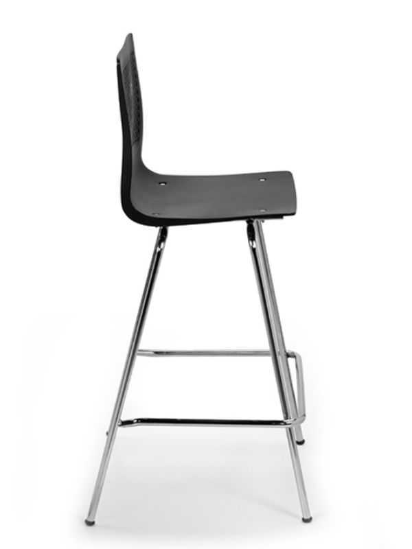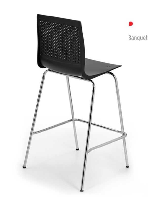 asiento de una sola pieza en plástico de alto impacto. Estructura metálica cromada de cuatro patas. Disponible en colores: amarillo, azul, blanco, gris claro, negro, rojo y verde. Estructura en gris o negra. Resistente, moderno y ideal para distintos espacios.