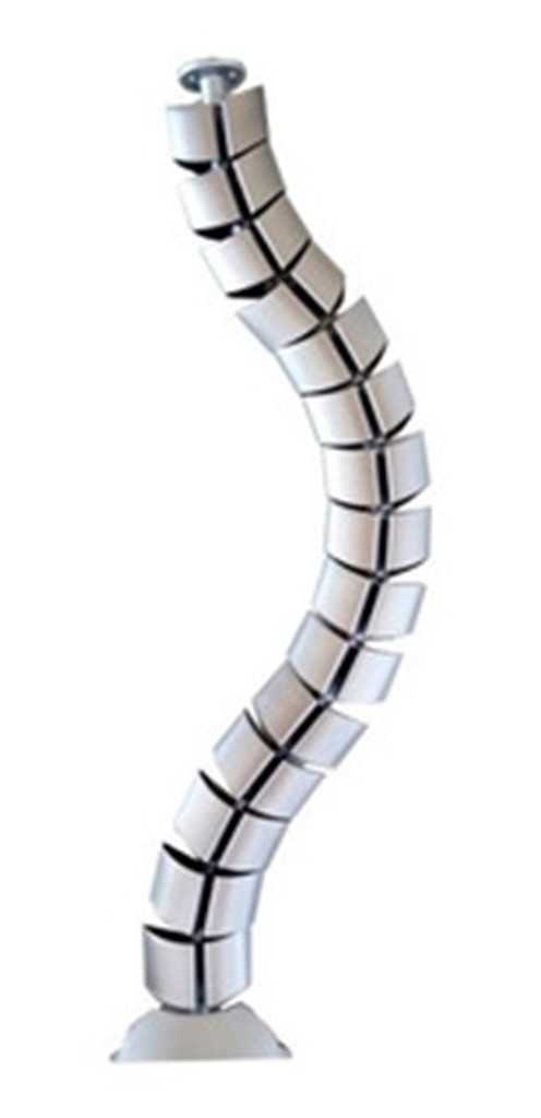 Organizador vertical giratorio y desmontable, fabricado en PVC color gris aluminio. Medidas: 74,5 cm de alto x 74,5 cm de largo x 0,08 cm de ancho. Incluye 15 vértebras modulares (se pueden agregar o quitar), 1 base y 1 soporte vertical. Peso aproximado: 1 kg. Ideal para ordenar cables de forma práctica.